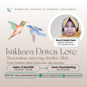 Webinar Women in Depth Tema : Istikhara Driven Love 📢 WEBINAR SPECIAL: “ISTIKHARA-DRIVEN LOVE – Menemukan Cinta yang Diridhoi Allah” “Sudahkah kamu memastikan bahwa cinta dan pilihanmu adalah yang terbaik untuk dunia dan akhiratmu?” Bingung memutuskan hubungan yang sedang dijalani?Ingin menikah tapi masih ragu dengan pilihan hati?Atau mungkin sedang menunggu