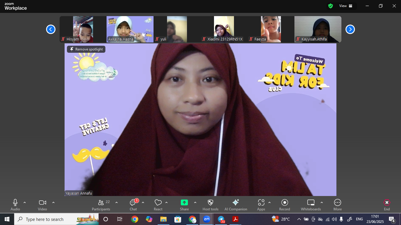 Alhamdulillah telah terlaksana Ta’lim for Kids dengan Tema ” One God, One Deen , One Ummah”. Ta’lim ini merupakan bagian dari kegiatan liburan untuk anak TK, SD , SMP dengan peserta dari berbagai daerah yaitu, Cianjur, Depok, Garut, Jakarta, Tegal dan Depok.